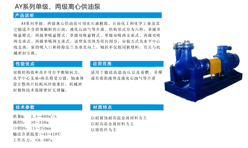 AY系列單級、兩級離心供油泵